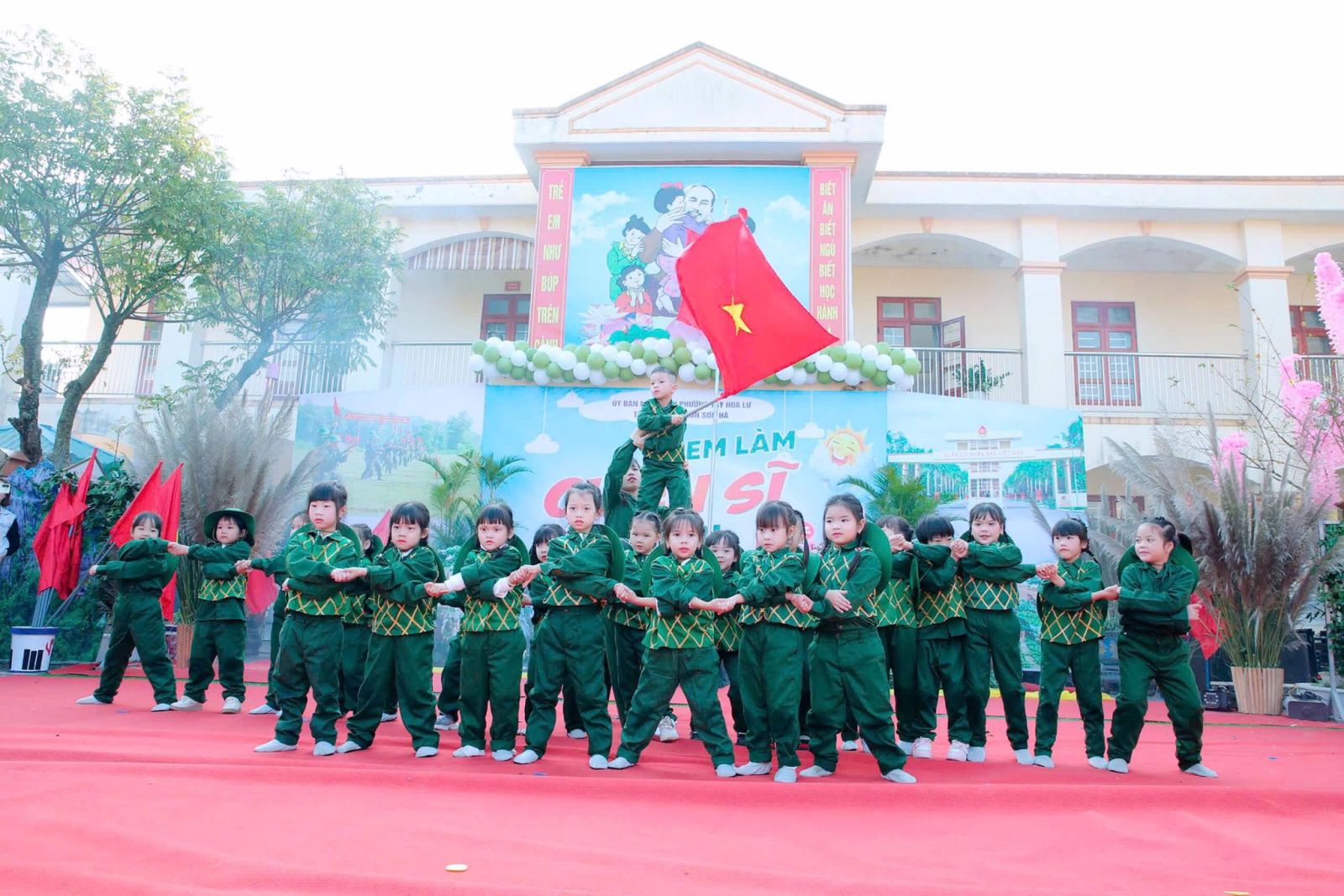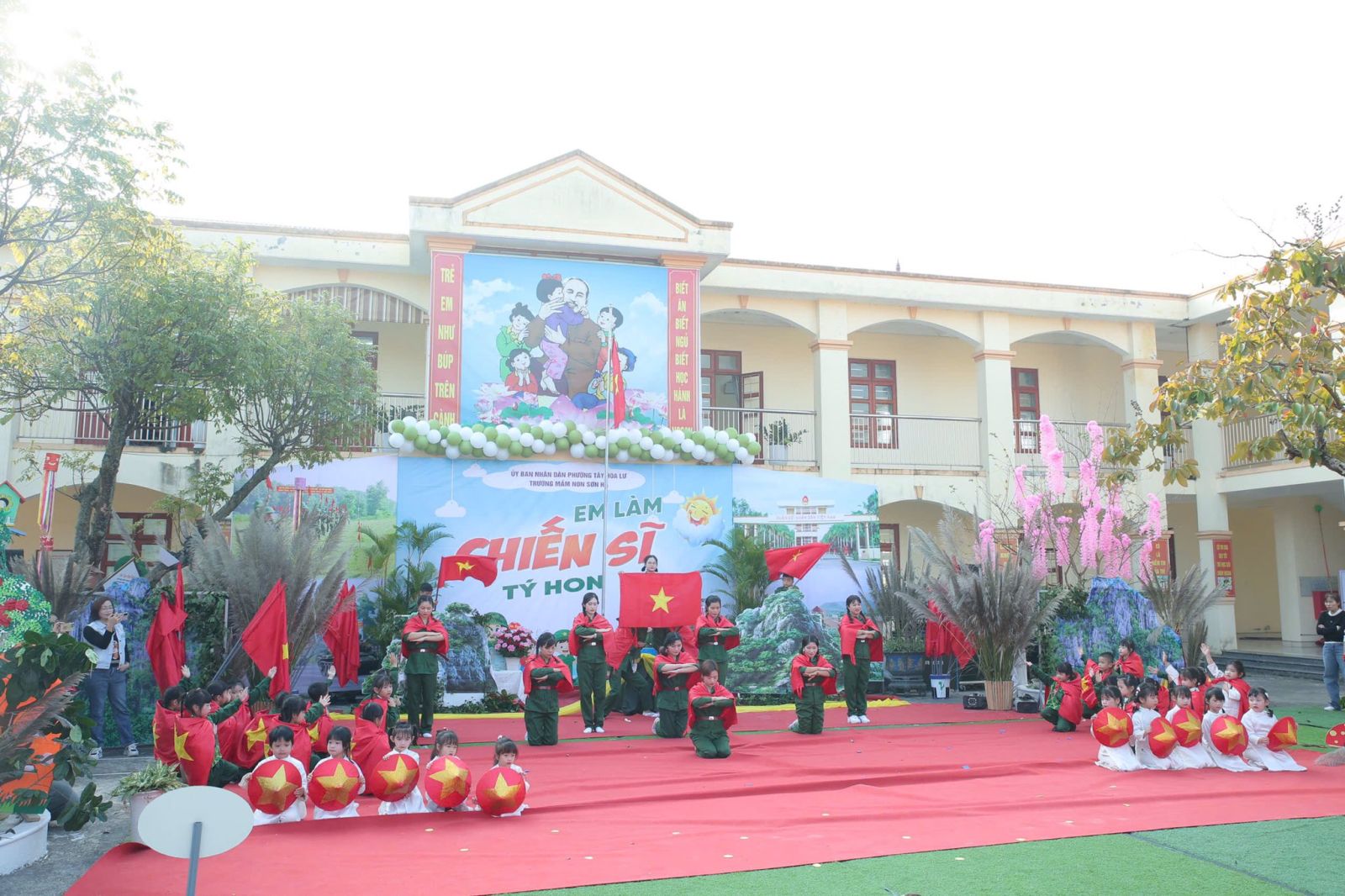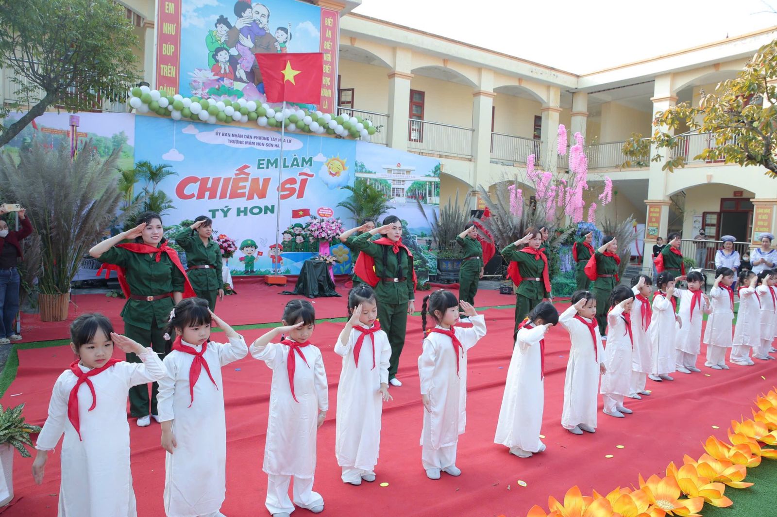 Sáng nay ngày 19/12/2025, trong không khí vui tươi và đầy tự hào hướng tới kỷ niệm 81 năm ngày thành lập Quân đội Nhân dân Việt Nam. Được sự nhất trí của UBND Phường Tây Hoa Lư, hôm nay cô và trò Trường mầm non Sơn Hà long trọng tổ chức chương trình CHIẾN SĨ TÝ HON , nhằm tạo ra một sân chơi lành mạnh bổ ích và lí thú cho các bé, nơi các bé được hóa thân thành những chiến sĩ dũng cảm, mạnh mẽ, tự tin và kỷ luật