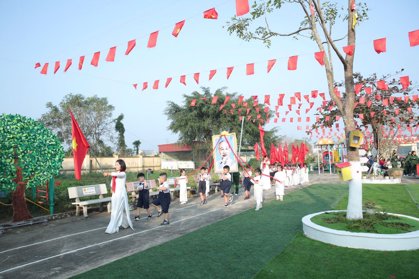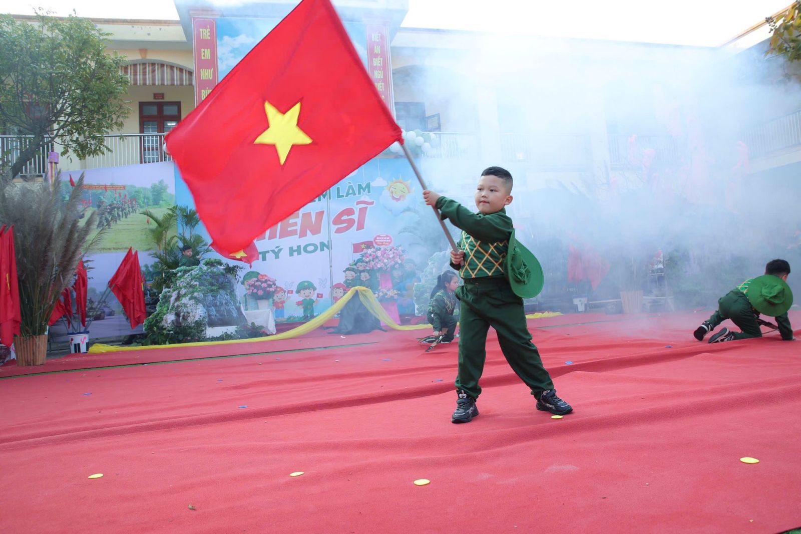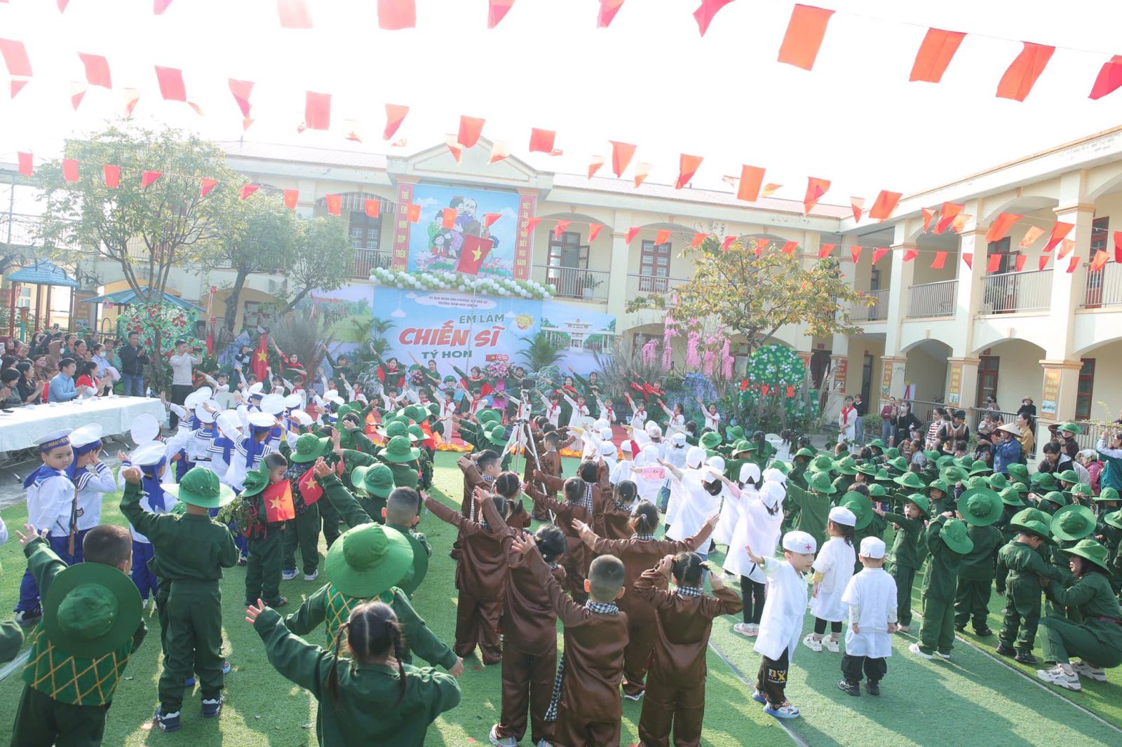 Sáng nay ngày 19/12/2025, trong không khí vui tươi và đầy tự hào hướng tới kỷ niệm 81 năm ngày thành lập Quân đội Nhân dân Việt Nam. Được sự nhất trí của UBND Phường Tây Hoa Lư, hôm nay cô và trò Trường mầm non Sơn Hà long trọng tổ chức chương trình CHIẾN SĨ TÝ HON , nhằm tạo ra một sân chơi lành mạnh bổ ích và lí thú cho các bé, nơi các bé được hóa thân thành những chiến sĩ dũng cảm, mạnh mẽ, tự tin và kỷ luật