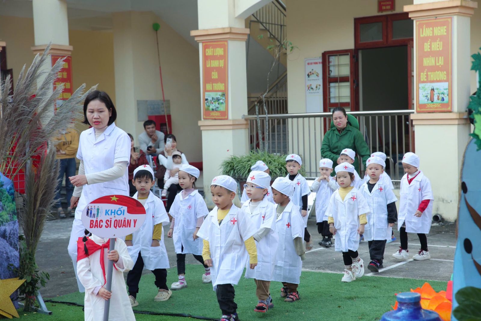 Về dự và cổ vũ cho chương trình có sự hiện diện của đ/c Đinh Xuân Cấp – Phó phòng văn hoá xã hội Phường Tây Hoa Lư, các đ/c là Hiệu trưởng, Phó hiệu trưởng các trường mầm non trong phường, cùng với ban đại diện CMHS nhà trường và toàn thể các bậc phụ huynh trong trường cũng về cổ vũ cho chương trình ngày hôm nay![]()