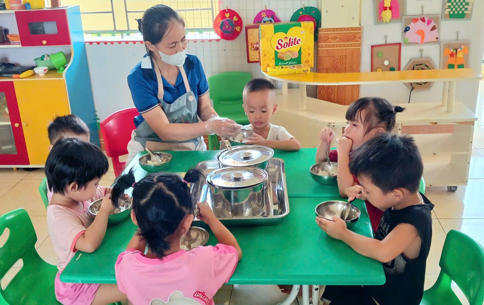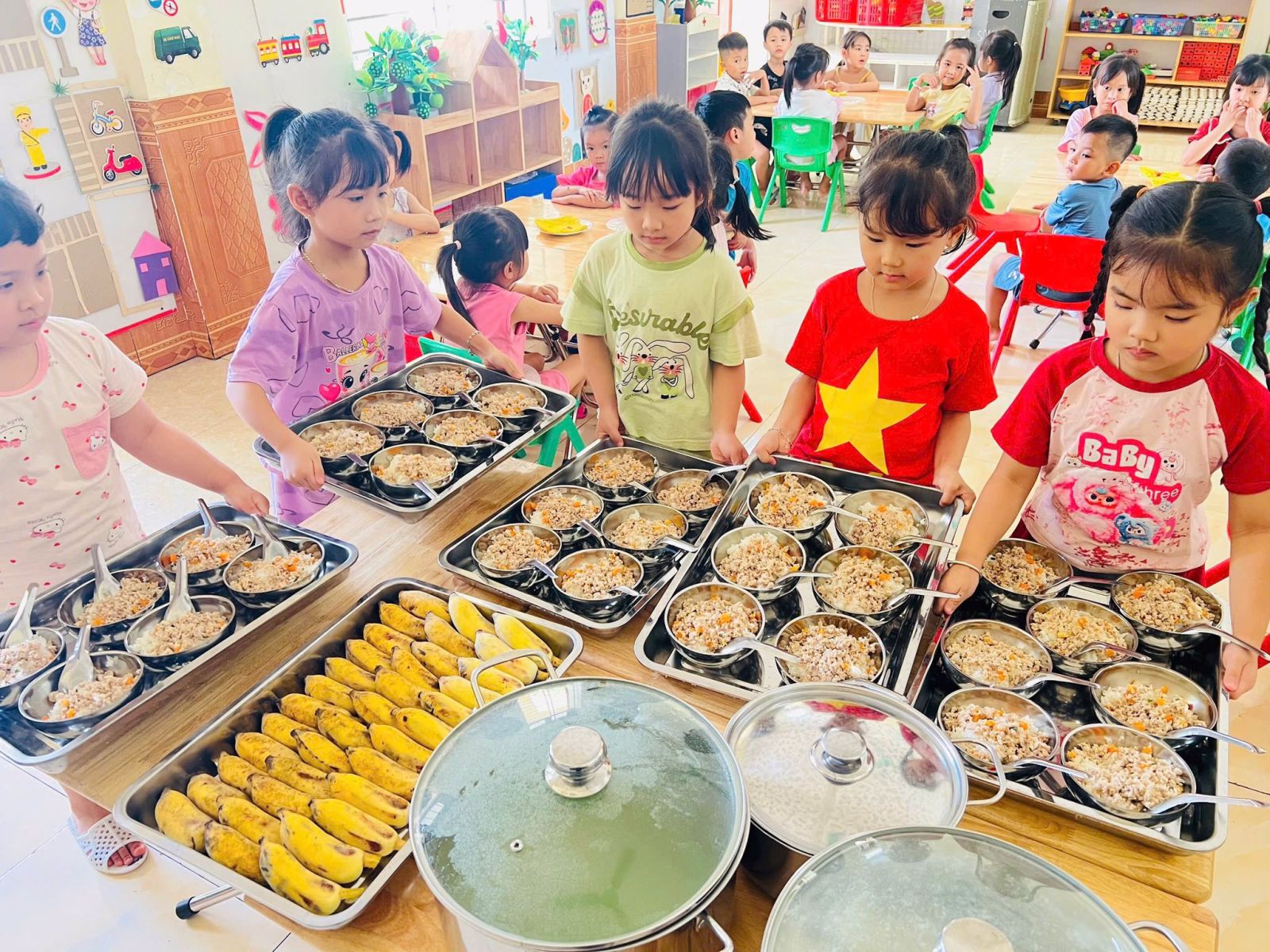 Những việc làm tuy nhỏ nhưng mang lại lợi ích lớn: Giúp các bé ăn ngon – sạch sẽ – khỏe mạnh – tự tin, góp phần hình thành nề nếp tốt ngay từ lứa tuổi mầm non.