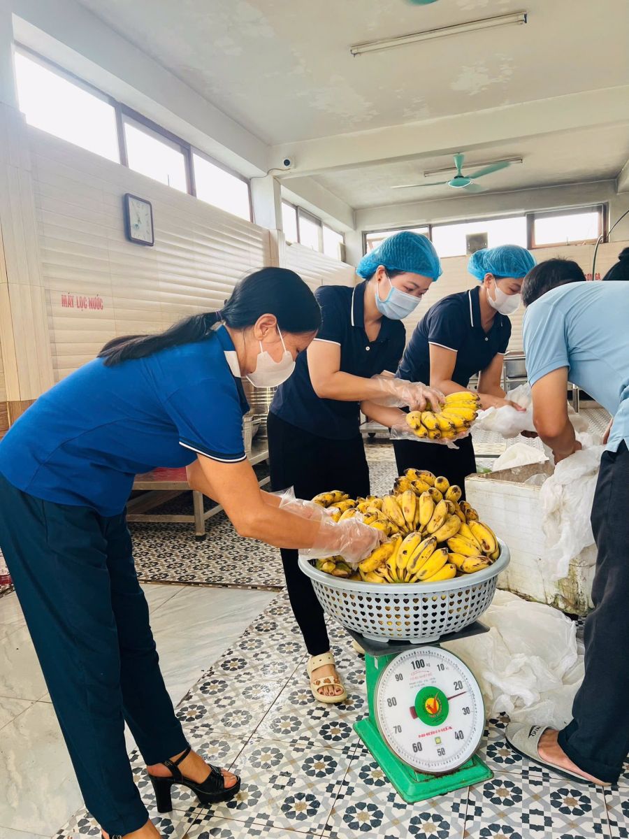 Các món ăn hàng ngày được xây dựng theo thực đơn khoa học, cân đối đủ 4 nhóm chất: tinh bột, đạm, béo, vitamin và khoáng chất. Nhờ vậy, các bé được cung cấp đầy đủ năng lượng để học tập, vui chơi và phát triển khỏe mạnh. Bếp ăn luôn gọn gàng, sạch sẽ, dụng cụ chế biến và chia thức ăn được tiệt trùng thường xuyên. Nhân viên bếp tuân thủ quy định mặc trang phục gọn gàng, đeo khẩu trang, găng tay khi chế biến để đảm bảo an toàn tuyệt đối.
